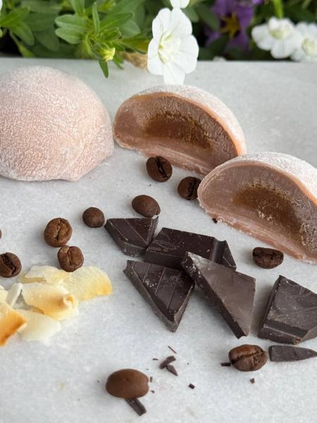 Кофейный крем из карамельного шоколада и соленая карамель в оболочке из заварного рисового теста