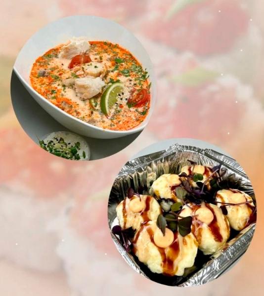 Обед 3: запеченный с креветкой и том ям с курицей