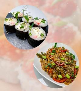Состав: чиз-маки с креветкой, тяхан с овощами.