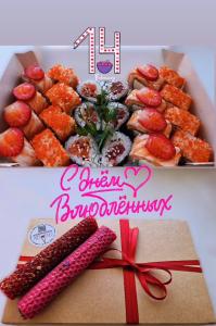 Состав: Филадельфия-клубника, калифорния с угрем, хосомаки с лососем, хосомаки с тунцом, 1 свеча в подарок